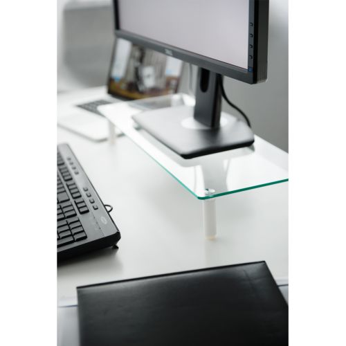 Il vetro di sicurezza temprato e i piedini antiscivolo in silicone forniscono un supporto sicuro al monitor Superficie d’appoggio 56x21cm