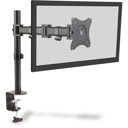 Morsetto da scrivania monitor singolo Digitus, nero, Girevole 45°, inclinabile 45°, ruotabile 360°, 38-69cm, TFT, Peso massimo 8Kg, VESA max 100x100 Supporto universale per monitor per un posizionamento flessibile del monitor sulla propria postazione di lavoro, con possibilità di inclinazione e di rotazione orizzontale e verticale.