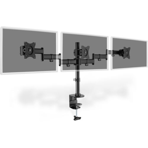 Supporto universale triplo monitor con morsetto fino a 69cm (27") Digitus Morsetto da tavolo triplo monitor, nero, 90ø girevole, 30ø inclinabile, rotazione 360ø,15"-27" TFT, Carico max.