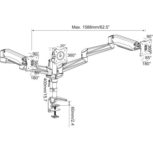 6kg, VESA max 100x100 Il morsetto da tavolo universale consente l'installazione di schermi LCD e LED di tutte le marche fino a 69 cm.