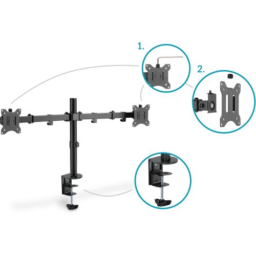 Fissaggio a incastro per monitor doppio 17-32'', 2 x 8 kg (max), nero Questo supporto per scrivania consente di orientare a piacimento monitor da 15'' a 32''.