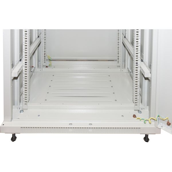 - Possibilità di ingresso dei cavi di rete dall'alto dell'armadio o dal basamento.