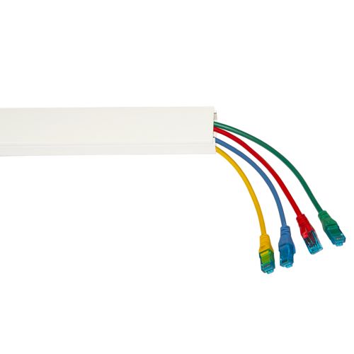Canalina passacavo coprifili da parete adesiva, senza separatore, colore bianco RAL9010-9016, verniciabile e tagliabile a seconda delle esigenze.