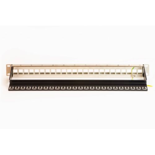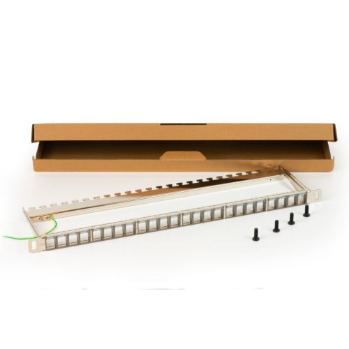 PANNELLO PATCH VUOTO IN METALLO CON BARRA SUPPORTO POSTERIORE PER CONNETTORI SCHERMATI CON PRESA A TERRA VITI INCLUSE GRIGIO