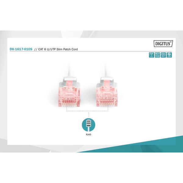 I cavi patch DIGITUS® slim si distinguono per il diametro esterno contenuto e la guaina flessibile. Il design sottile consente un utilizzo versatile nella rete. Inoltre, i cavi patch DIGITUS® slim sono prodotti secondo le norme ISO/IEC 11801 e DIN EN 50173 CAT 6. Ciò garantisce che l'installazione dei cavi è conforme alle specifiche dei canali ISO e EN e fornisce prestazioni eccellenti per il cablaggio CAT 6 DIGITUS®. Le prestazioni sono state testate fino a 250 MHz, comprese le caratteristiche prestazionali come la near-end crosstalk (“NEXT”). I cavi patch DIGITUS® sono stati progettati specificamente per soddisfare appieno tutti i requisiti in diverse aree di applicazione. Ciascun cavo è dotato di manicotto antipiega stampato e di serracavo. Inoltre, il manicotto è dotato di una protezione con leva di bloccaggio che impedisce che i cavi si pieghino e che la leva di bloccaggio si stacchi dal connettore. La categoria 6 è facilmente riconoscibile dai connettori di colore rosso.