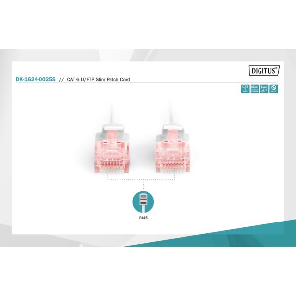 I cavi patch DIGITUS® slim si distinguono per il diametro esterno contenuto e la guaina flessibile. Il design sottile consente un utilizzo versatile nella rete. Inoltre, i cavi patch classe E categoria 6 di DIGITUS® sono realizzati e testati secondo gli standard di ISO/IEC 11801 e DIN EN 50173 CAT 6. Garantiscono che l’installazione del cavo soddisfa le specifiche ISO & EN Channel e offrono prestazioni eccellenti nel cablaggio del CAT 6 DIGITUS®. La prestazione è stata testata fino a 250 MHz, comprese le caratteristiche prestazionali come per esempio la paradiafonia (“NEXT”). I cavi patch DIGITUS® sono stati progettati per soddisfare completamente tutte le richieste delle varie aree applicative. Ogni cavo è dotato di un salvacordone costampato con serracavo. Inoltre la guarnizione ha una protezione del fermo che impedisce l’aggrovigliamento del cavo così come la rottura della leva di arresto dal connettore. Una semplice identificazione della categoria 6 è resa possibile dalla colorazione rossa della spina.