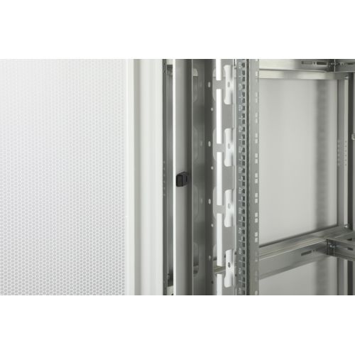 Gli armadi di rete della serie Unique sono stati progettati e prodotti per un cablaggio di rete particolarmente comodo e flessibile. Le sofisticate ottimizzazioni offrono una stabilità conforme al mercato e la massima flessibilità. Il telaio di base modulare, che può essere aperto con pannelli ciechi avvitati da 483 mm (19"), offre spazio sufficiente per cavi di ogni tipo. Inoltre, sono presenti ingressi laterali per i cavi con spazzole nella parte superiore e inferiore dell'involucro, oltre a un altro sul retro dello chassis di base. Generose canaline verticali con ausili per il passaggio dei cavi e coperture, installate nella parte anteriore (a partire da 800 mm di larghezza dell'armadio), completano perfettamente le caratteristiche di versatilità dell'armadio di rete. All'interno sono installate due coppie di guide profilate da 483 mm (19"), zincate e con etichetta con unità di altezza leggibili in direzioni opposte. Sono regolabili in continuo e sono collegate a montanti di profondità aggiuntivi nell'armadio. Ogni armadio è una robusta struttura in acciaio realizzata con lamiere di spessore fino a 1,5 mm. La colorazione è a polvere elettrostatica nei colori standard grigio (RAL 7035) e nero (RAL 9005). I pannelli laterali e le porte modulari, bloccabili e rimovibili, migliorano l'accessibilità. Le cerniere delle porte possono essere sostituite. Inoltre, grazie al design smontabile, gli armadi possono essere completamente smontati se necessario.