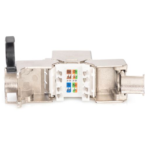 Il modulo Cat-8.I Keystone con schermatura a 360° supporta velocità di trasmissione fino a 25 GBit/s o 40 GBit/s in combinazione con cavi di installazione Cat-8.