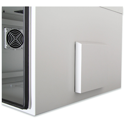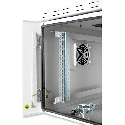 Gli alloggiamenti da parete per esterni IP55 da 483 mm (19") sono stati prodotti per applicazioni industriali. Sono conformi alla classe di protezione IP55 conformi a EN 60529 e quindi sono protetti dall'acqua e dalla polvere. Le unità di ventilazione e i filtri si basano sulla classe di protezione IP54. Gli alloggiamenti a parete offrono delle prestazioni migliori tra cui il sistema di chiusura a 3 punti con una maniglia girevole e bloccabile e gli ingressi dei cavi isolati. Gli alloggiamenti integrati dei filtri di ventilazione forniscono l'ingresso dell'aria fresca (protezione dall'acqua e dalla polvere secondo IP54). Le aree di applicazione sono gli ambienti esterni che sono esposti agli effetti ambientali (pioggia, povere, grandine, neve, spruzzi).