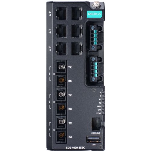 La serie EDS−4009 è una gamma di switch Fast Ethernet gestiti a 9 porte con l'opzione di tre porte in fibra ottica ST/SC da 100 M