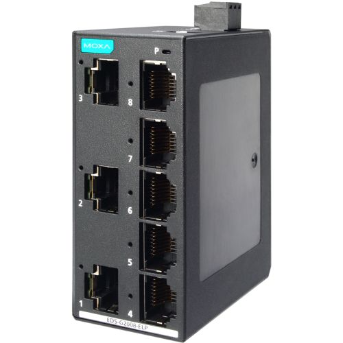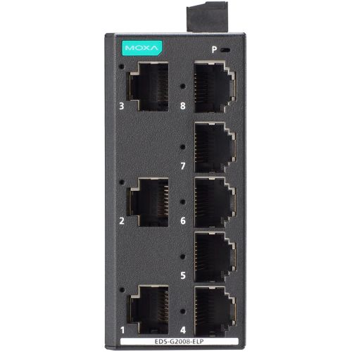 La serie di switch Ethernet industriali EDS−G2008−ELP dispone di otto porte Gigabit Ethernet e di un involucro in plastica, ideali per applicazioni che richiedono connessioni Ethernet industriali semplici