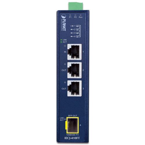 Industrial 3-Port RJ45 + 1-Port SFP EtherCAT Junction Slave (-40~75 degrees C, dual 9~48V DC, 1 x 100TX RJ45 IN, 2 x 100TX RJ45 OUT, 1 x 100FX SFP OUT, BECKHOFF EtherCAT conformance test tool verified), co-work with IECC-210R
