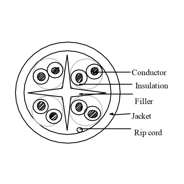 Sezione cavo AWG24, in rame. Guaina Halogenfree LSZH.