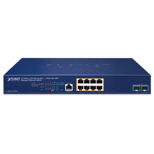 Layer 3, 8-Port 2.5GBASE-T 802.3at PoE + 2-Port 10GBASE-X SFP+ Managed Ethernet Switch(120W PoE budget, hardware-based Layer 3 RIPv1/v2, OSPFv2 dynamic routing, supports ERPS Ring, PoE PD alive check and schedule management)
