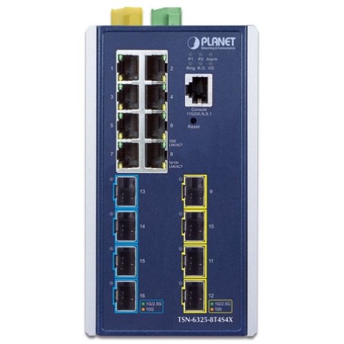 IP30 DIN-rail Industrial L3 8-Port 10/100/1000T + 4-port 1G/2.5G SFP + 4-Port 10G SFP+ Managed TSN Switch (-40 to 75 C, Time-Sensitive Networking technology, 802.1AS Time Synchronization, hardware-based 1588 PTP Master/Slave/TC/Boundary-clock, ERPS Ring,