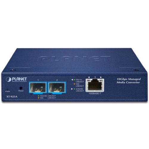 1-Port 10G/5G/2.5G/1G/100BASE-T + 2-Port 10G/1GBASE-X SFP+ Managed Media Converter(IPv4/IPv6 Dual stack management, supports TLSv1.2/SSHv2/SNMPv3 Cybersecurity features, LFP, 802.1Q VLAN, ERPS Ring, PLANET CloudViewer app and NMS MQTT)